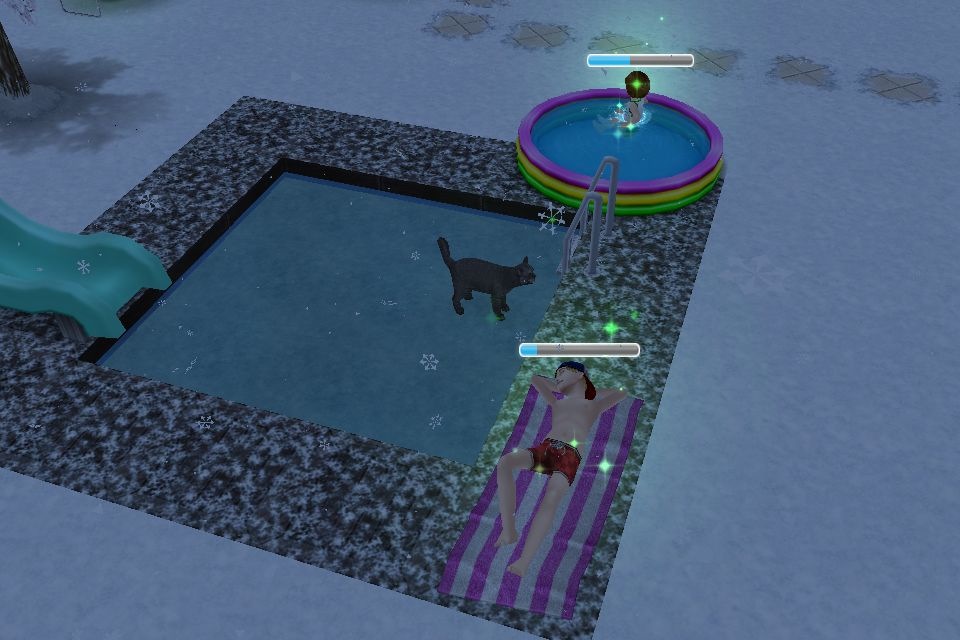 ダヤンが水の上に!バグかと思ったら、冬でプールが凍っているのでその氷上を歩いてる、ということみたいです。すっげーすっげー!