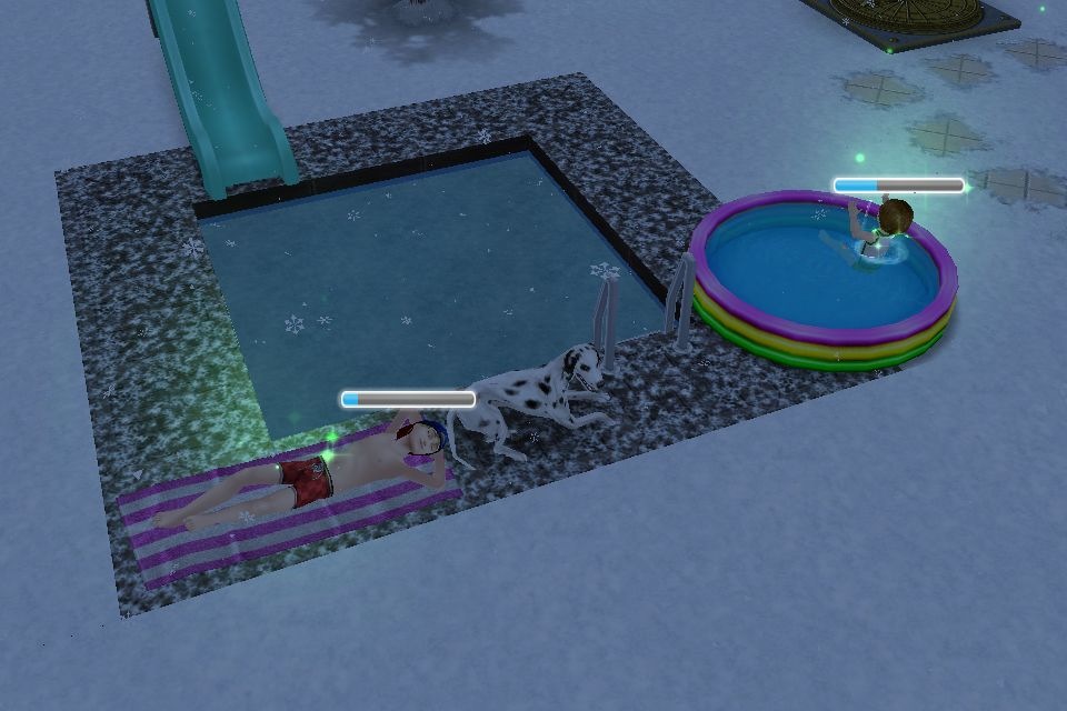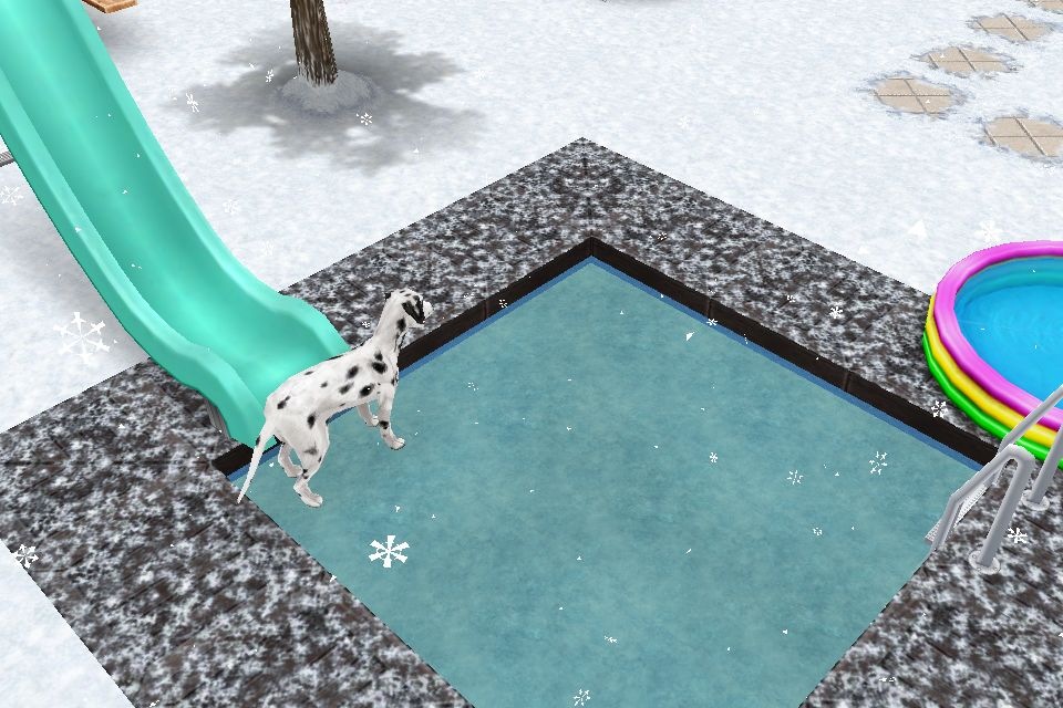 ダヤンが水の上に!バグかと思ったら、冬でプールが凍っているのでその氷上を歩いてる、ということみたいです。すっげーすっげー!