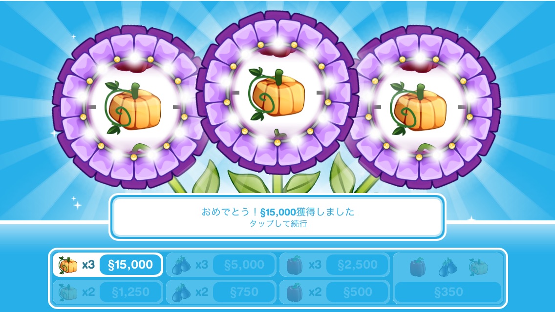 先日初めて畑ルーレットでかぼちゃが揃いました!フーヮッ!