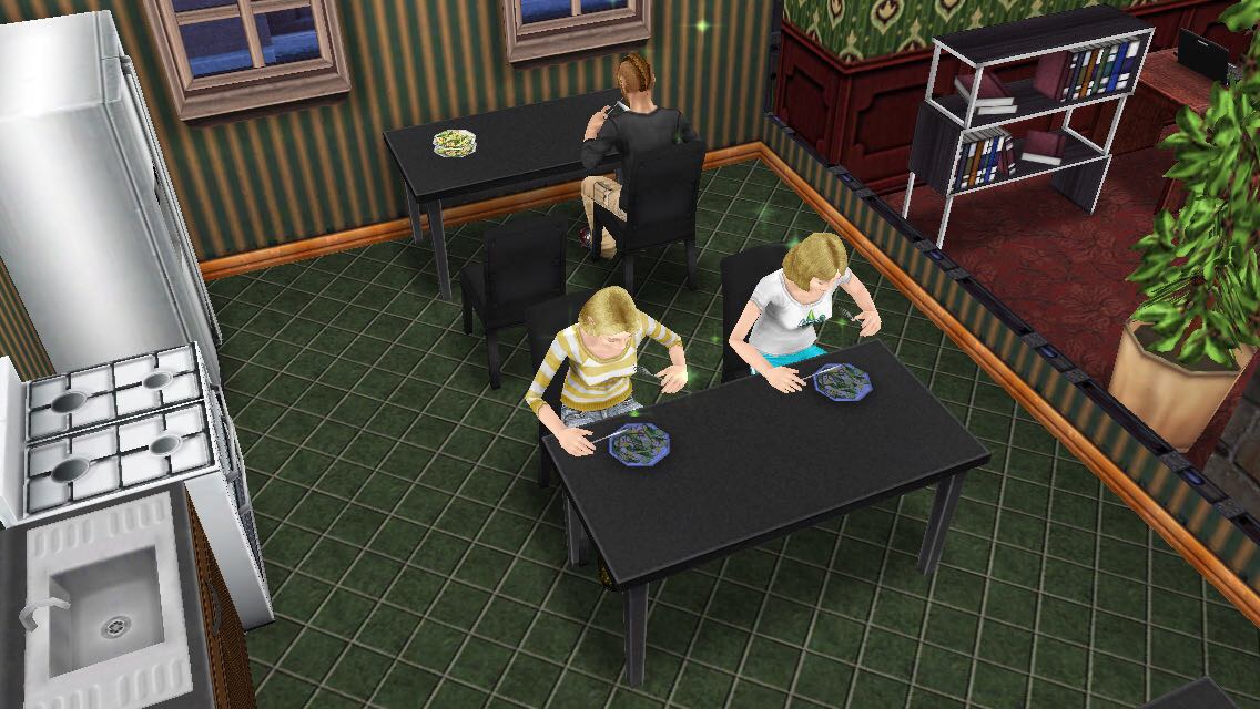 すると、なんということでしょう。角のシムのご飯がぶつかりあうことに。食器かちゃんかちゃんなるやろ。