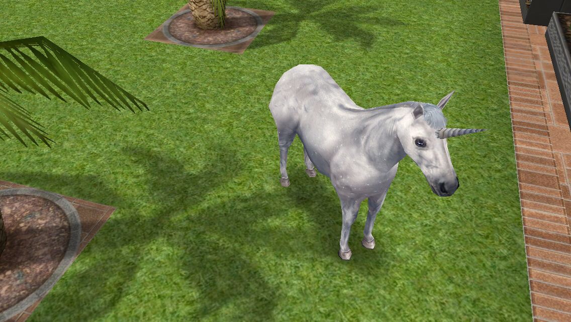 ちなみにユニコーンのクエストで「他のシムで馬を世話する練習をする」とかいうカオスシュールなシーンが見れました。