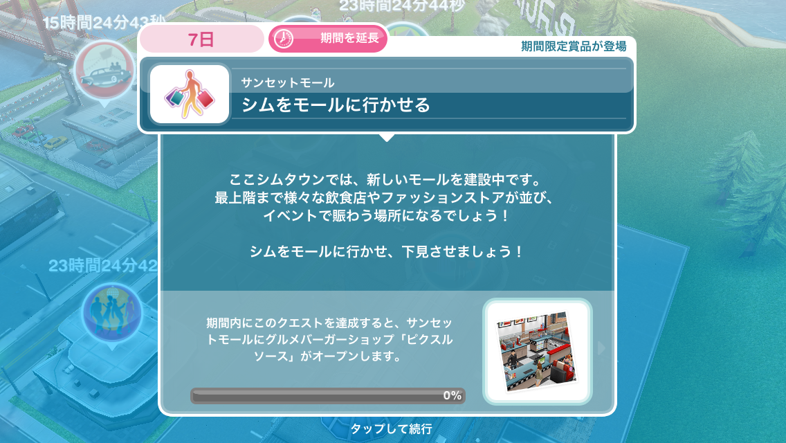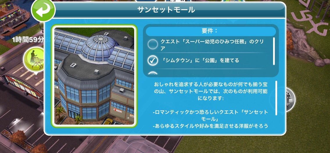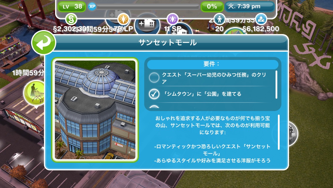 それを完了させ、以前から貯めていたLPも使用したら、秒でサンセットモール建設できました。