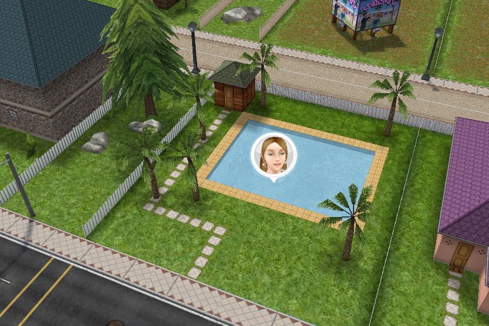 タウンの街並みの中で、ひときわ目立つ家(というかプール)がありました。