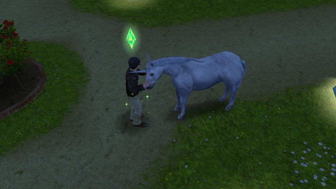 ちなみにユニコーンのクエストで「他のシムで馬を世話する練習をする」とかいうカオスシュールなシーンが見れました。