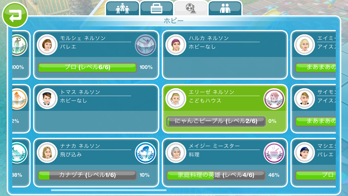 そんなこんなでこどもハウスの趣味を解禁できたので、エリーゼちゃんにせっせと極めてもらっています。