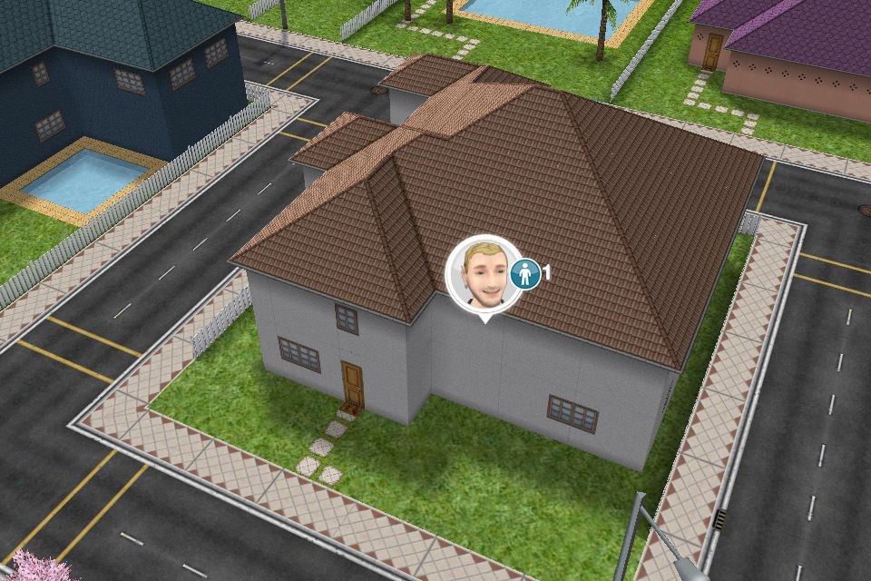 アップデートで現実の友達のタウンに遊びに行けるようになったシムズフリープレイ。
