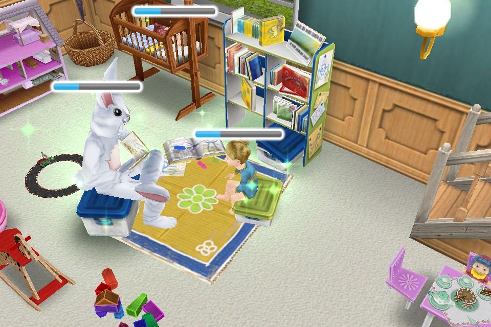 絵本を読んでもらってます。ウサギの服着てると本当にメルヘン。